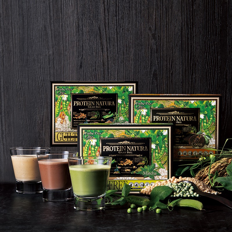 偏った食生活や加齢、生活環境などの影響による美と健康のリスクに備え、3種類の植物性プロテインを独自配合。良質なタンパク質を示す「アミノ酸スコア100」を実現しました。